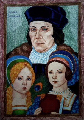 Вот, решила попробовать нарисовать дочерей Томаса Кромвеля - Грейс и Энн Кромвель, ну и его самого, естественно. Попыталась, как могла, стилизовать под картины эпохи Тюдоров. Не знаю, получилось ли... Ну, со стороны будет виднее! Конечно, настоящих портретов дочерей Томаса Кромвеля не сохранилось, да и вряд ли они были, так что рисовала, опираясь на описание их в романе Хилари Мантел "Вулфхолл, и